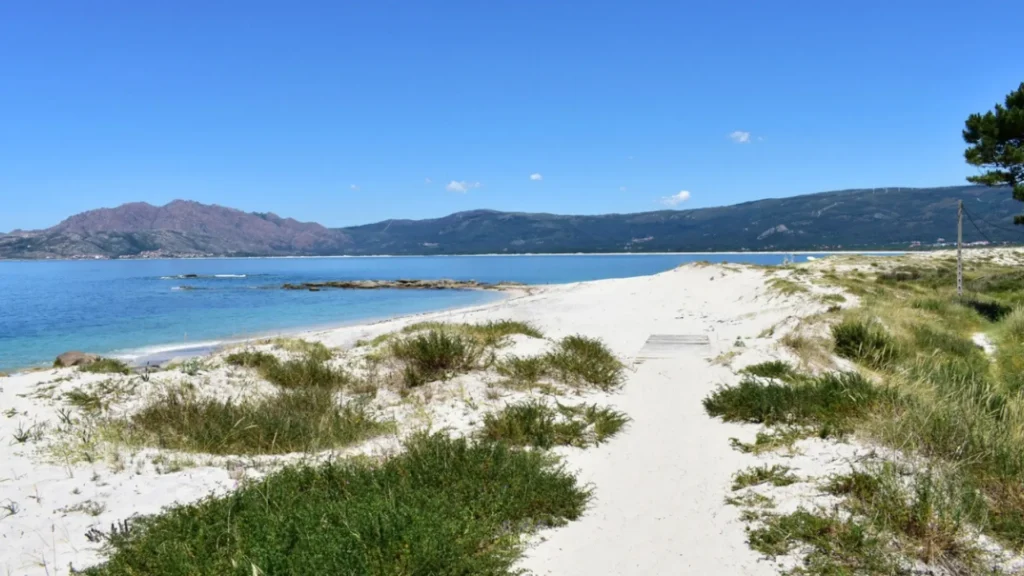 En la ría de Arousa, el Parque Natural de Corrubedo es famoso por sus dunas móviles y su paisaje casi desértico. Su playa principal es kilométrica y salvaje, perfecta para largos paseos y para sentir el poder del océano Atlántico.