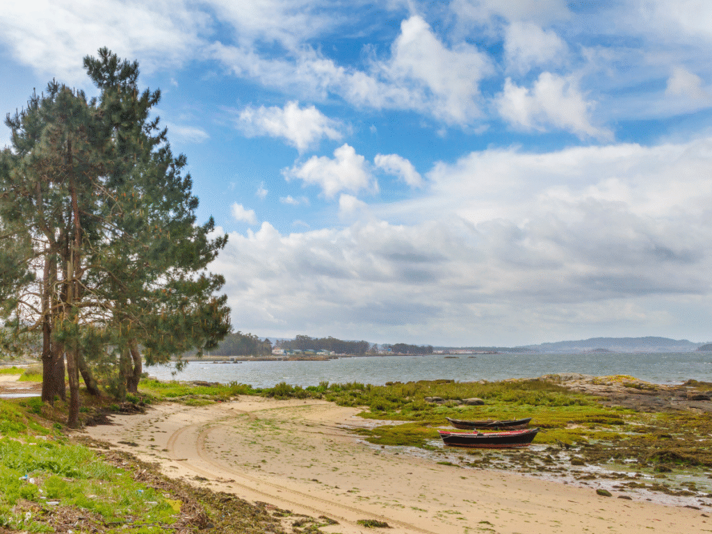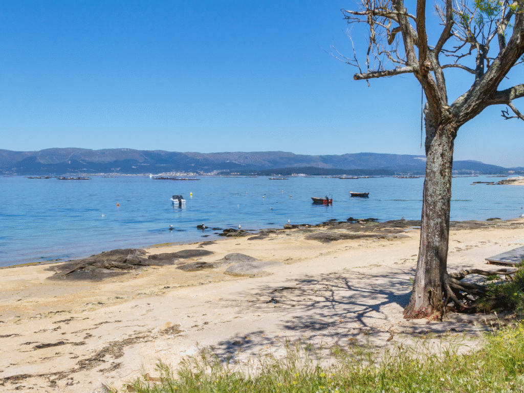 Y si te animas a cruzar el puente, en la Illa de Arousa te esperan joyas como Area da Secada o Area da Cruz, de arena blanca y aguas turquesas.