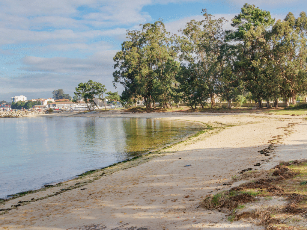 Playa do Terrón, rodeada de pinares, ideal para un día de picnic.